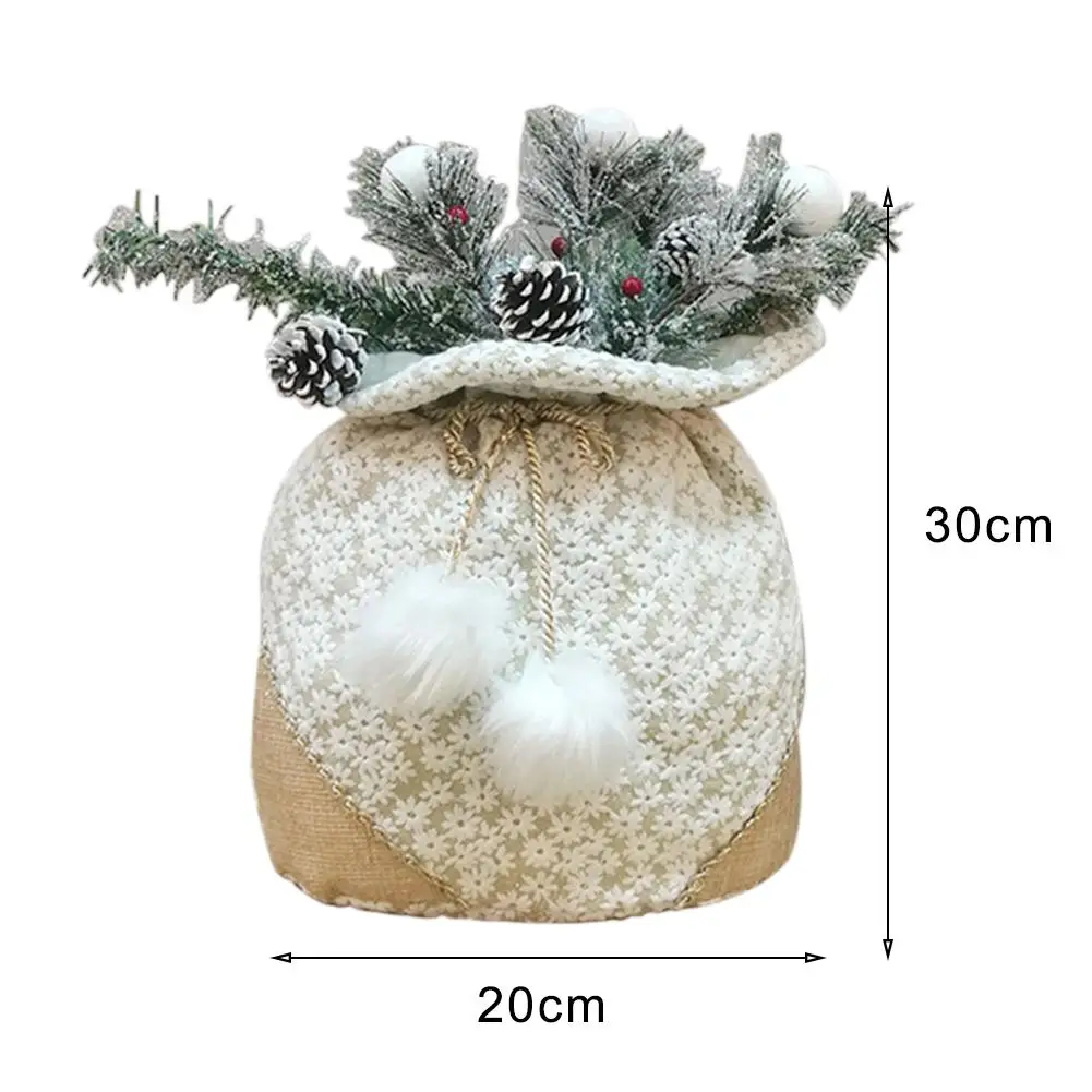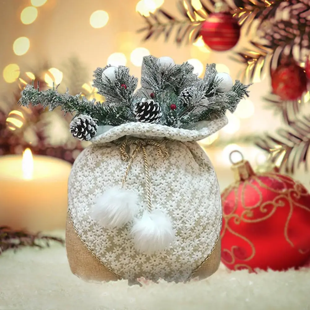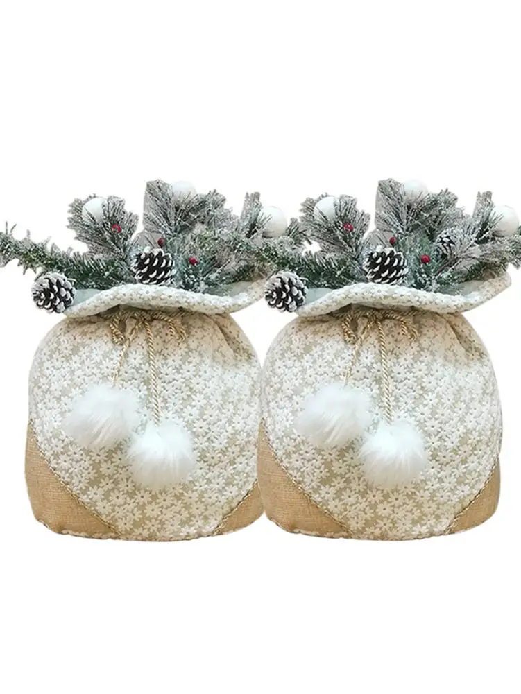 HIGH QUALITY 2pcs Christmas Gift Bag Plush Snowflake Flower Holder Pine Cone Candy Bag Storage Bag Office Hotel