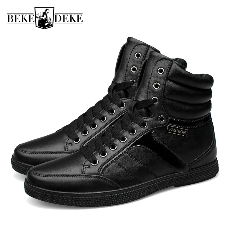 High Top Winter Warm Casual Shoes Men Lace Up Male Genuine Leather Breathable Retro Shoes Footwear