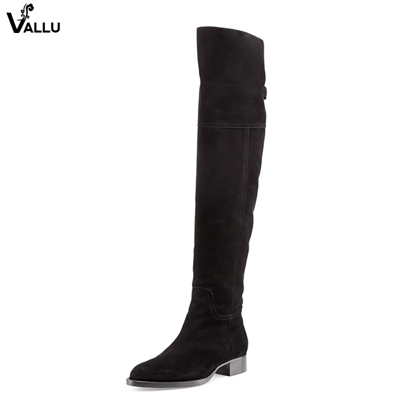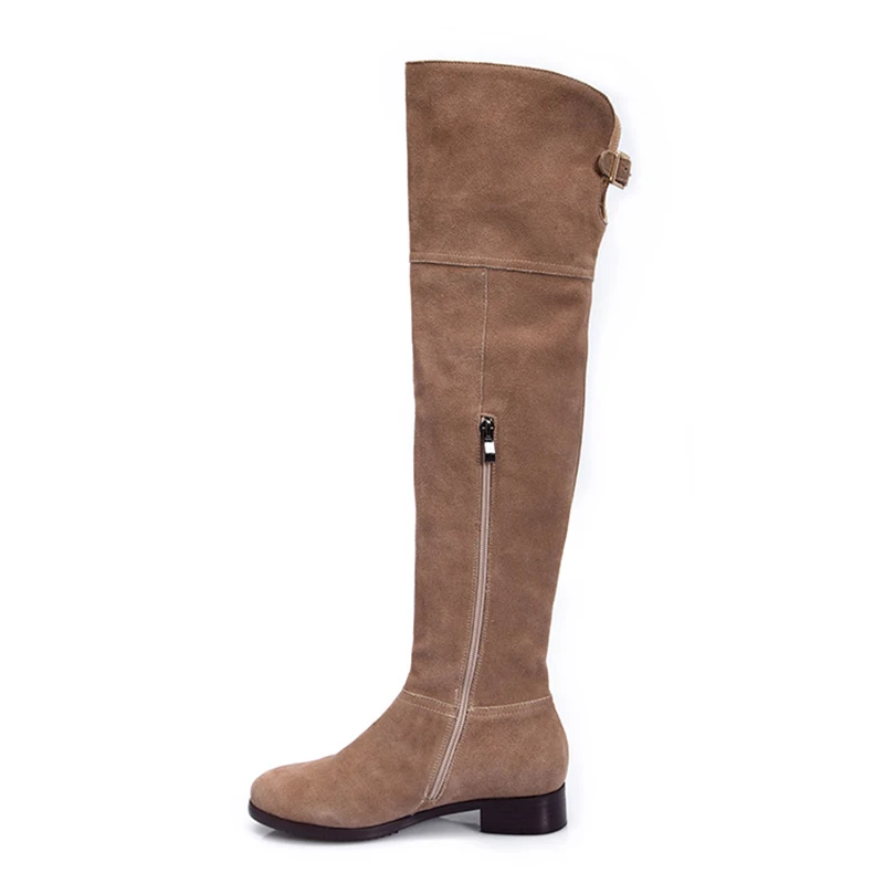 Nubuck Leather Thigh High Lady Boots Buckle Strap Stylish Brand Women Long Boots Handmade Block Hee