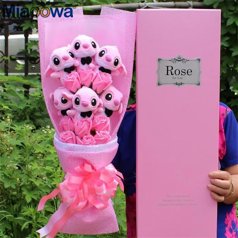 HIGH QUALITY Cute Cartoon Artificial Plush Toys Stitch Festivals Gift Bouquet with Fake Flowers For Romantic Hol