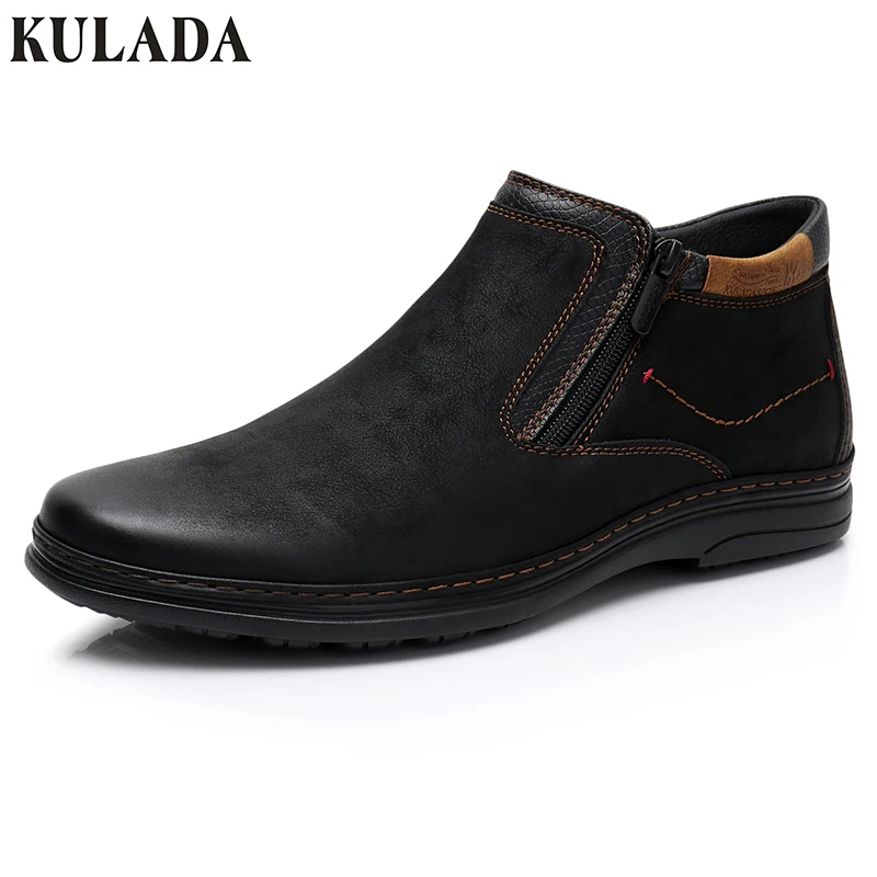 KULADA New Men Shoes Cow Suede High Quantiy Ankle Boots Men's Double Zipper Side Casual Boots Men's