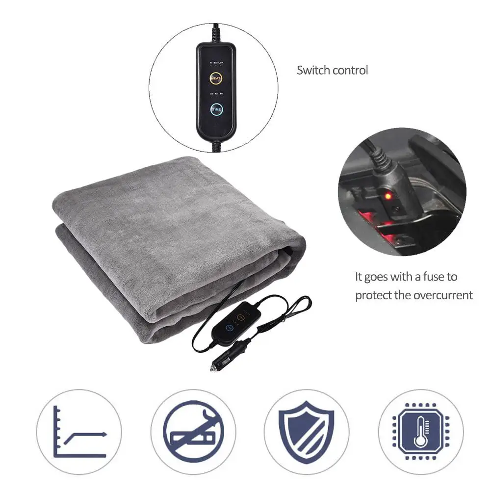 HOT SALE New 12v Car With Timed Temperature Control Heating Blanket Current Protection Gray Flannel 145X100c