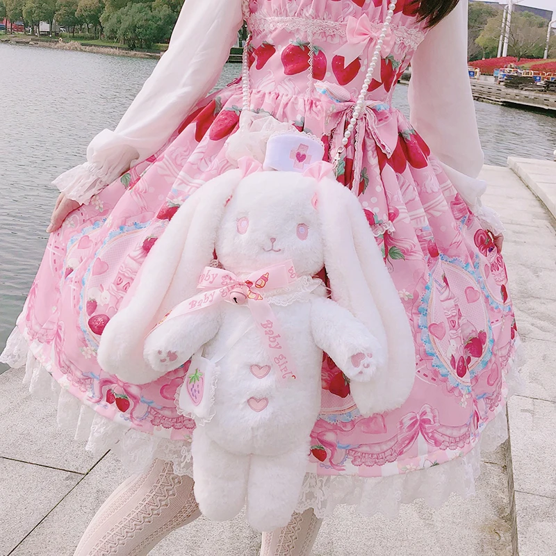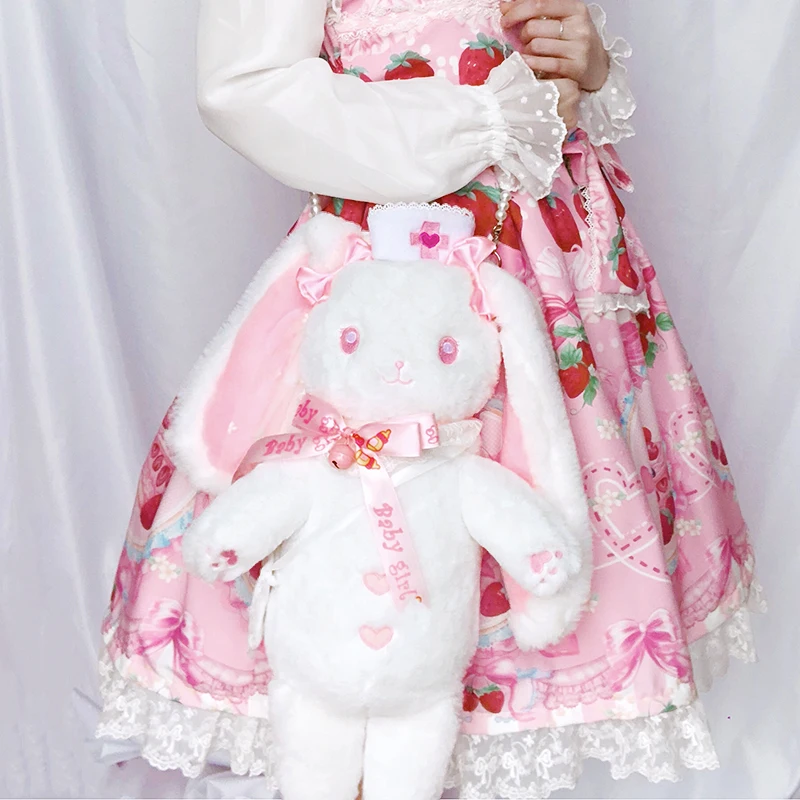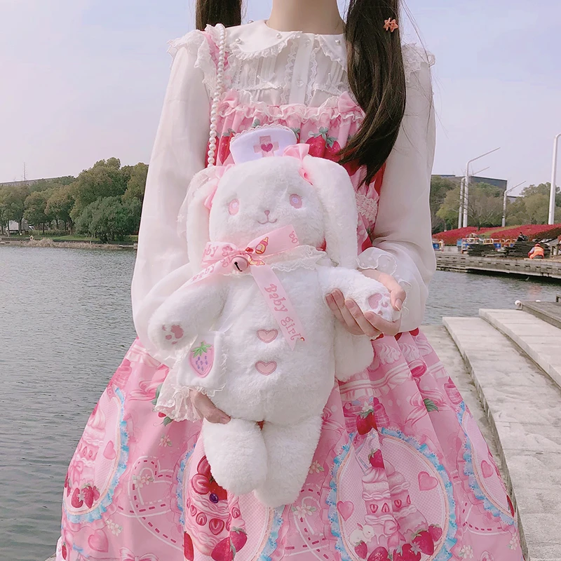 Korean Cute Rabbit Toy bag Lolita Japanese Kawaii Lop-ear Rabbit Plush Backpack Handbag Soft Sister