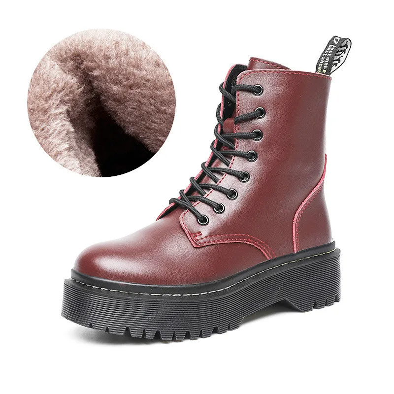 BEST Thick Heel Women Jason Martins Boots Genuine Leather Ankle Boots Lace Up Warm Plush Shoes Lady Ridi