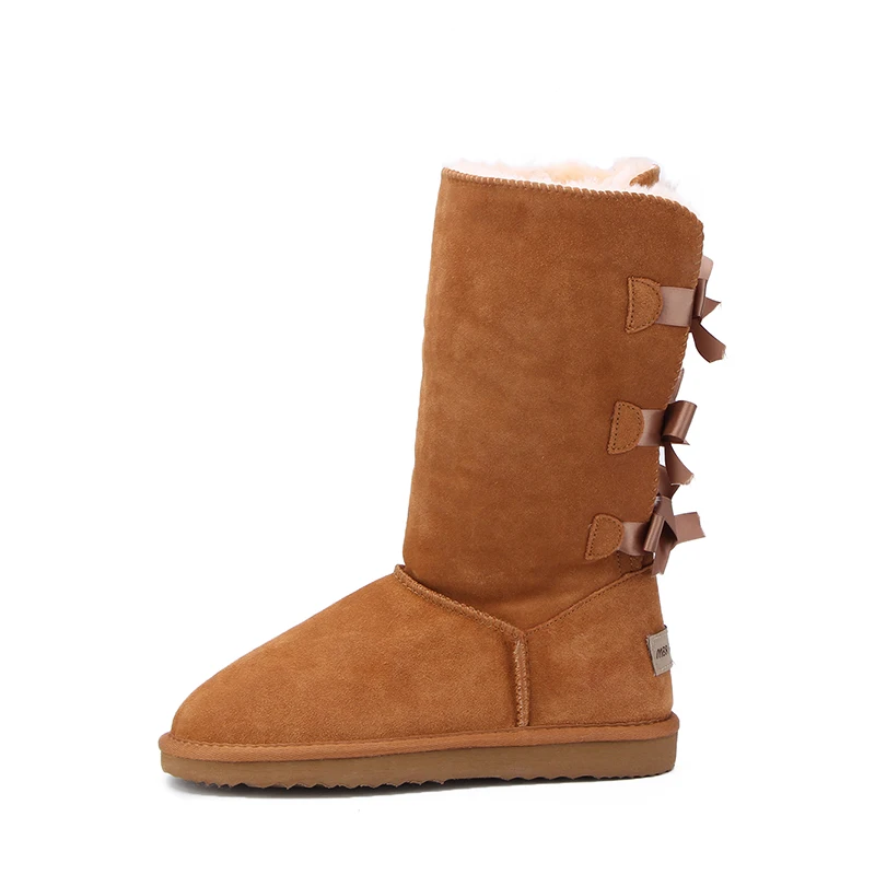 MBR FORCE 2018 Fashion Women Long Boots Genuine cow Leather Snow Boots Bowknot Snow Boots Warm High