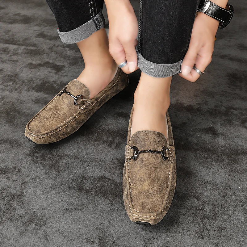 Best Quality Men's Casual Leather Peas Shoes Male Leather Soft Bottom Plush Korean Lofers Men's Casual Flats New