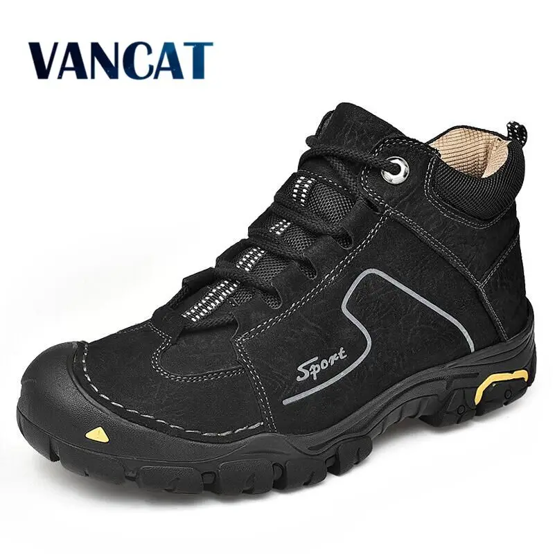 BEST QUALITY Vancat Brand Genuine Leather Snow Boots Men Shoes Adult Winter Short Plush Men Boots Ankle Boots Fa