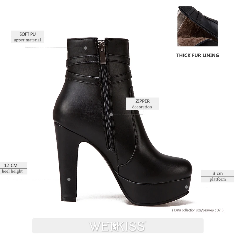 WETKISS 2020 Winter High Heels Ankle Women Boots Round Toe Footwear Crystal Pu Female Shoes Winter