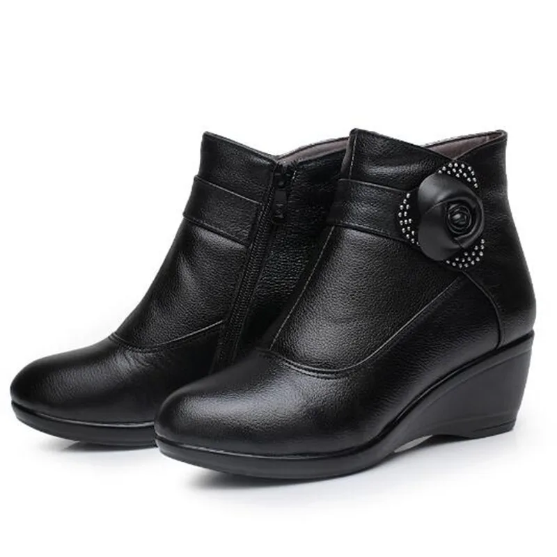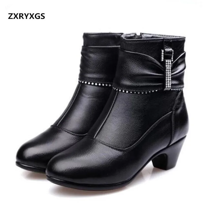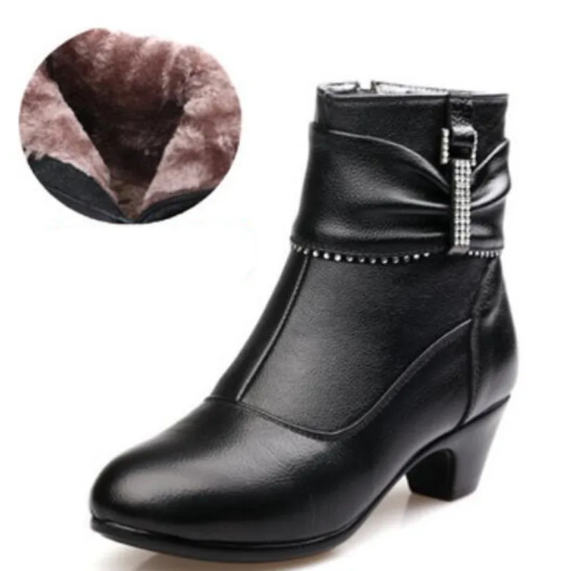 2019 New Fashion Women's Winter Boots Warm Cotton Genuine Leather Shoes Snow Boots High Heels Rhine