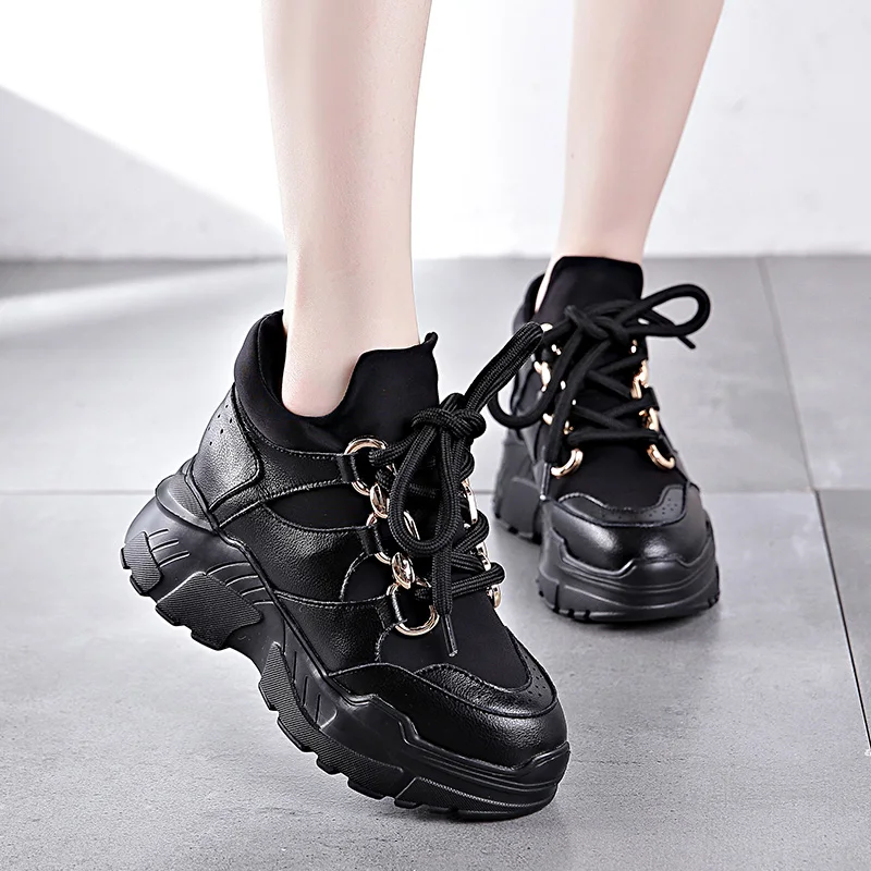 RASMEUP 8CM Height Increasing Women's Chunky Sneakers Genuine Leather Fashion Winter Women Platform