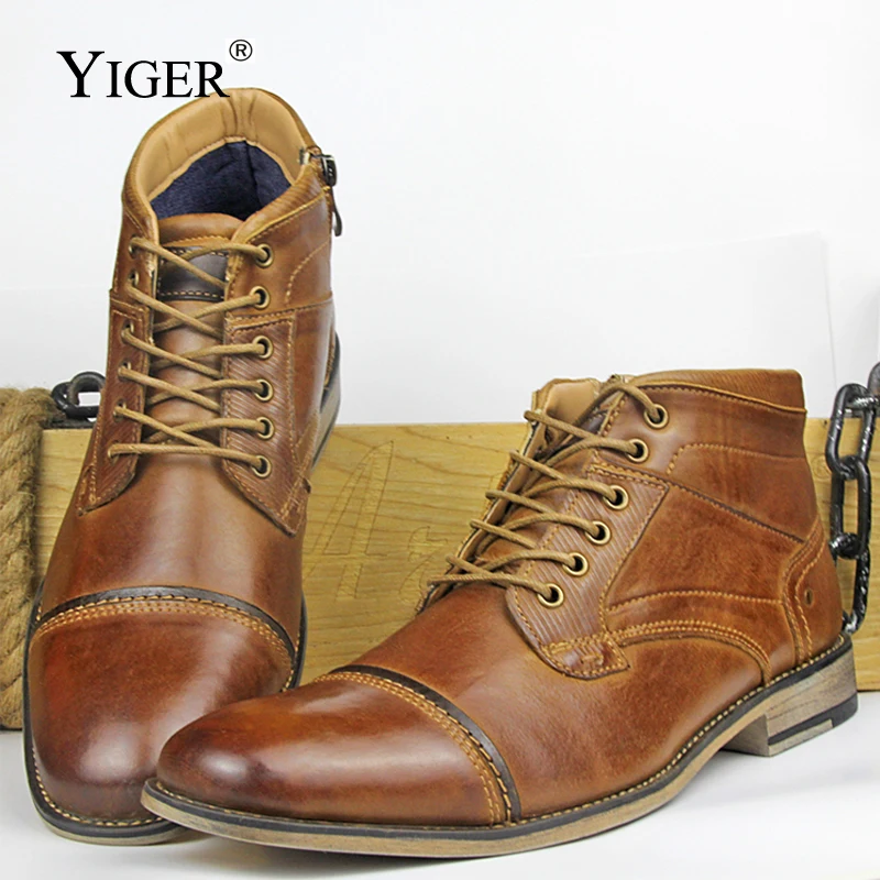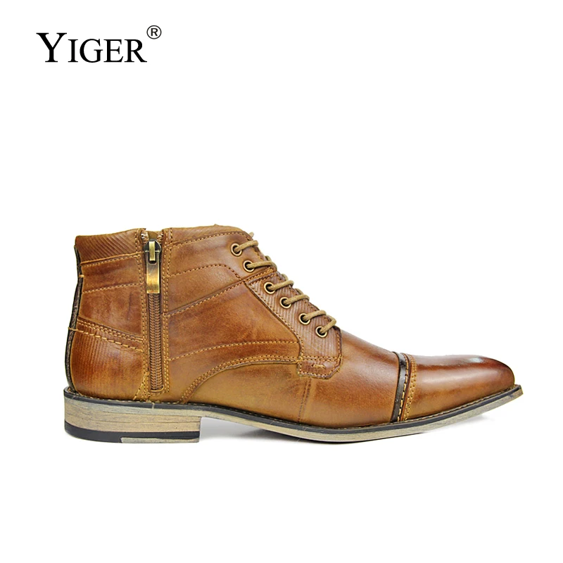 YIGER New Men Martins boots men ankle boots Genuine leather Winter warm with fur casual male boots