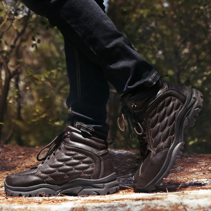 HOT Sale Winter High Cotton Shoes Male Plus Velvet Warm Outdoor Casual Shoes Cow Leather Men's Shoes Thicken