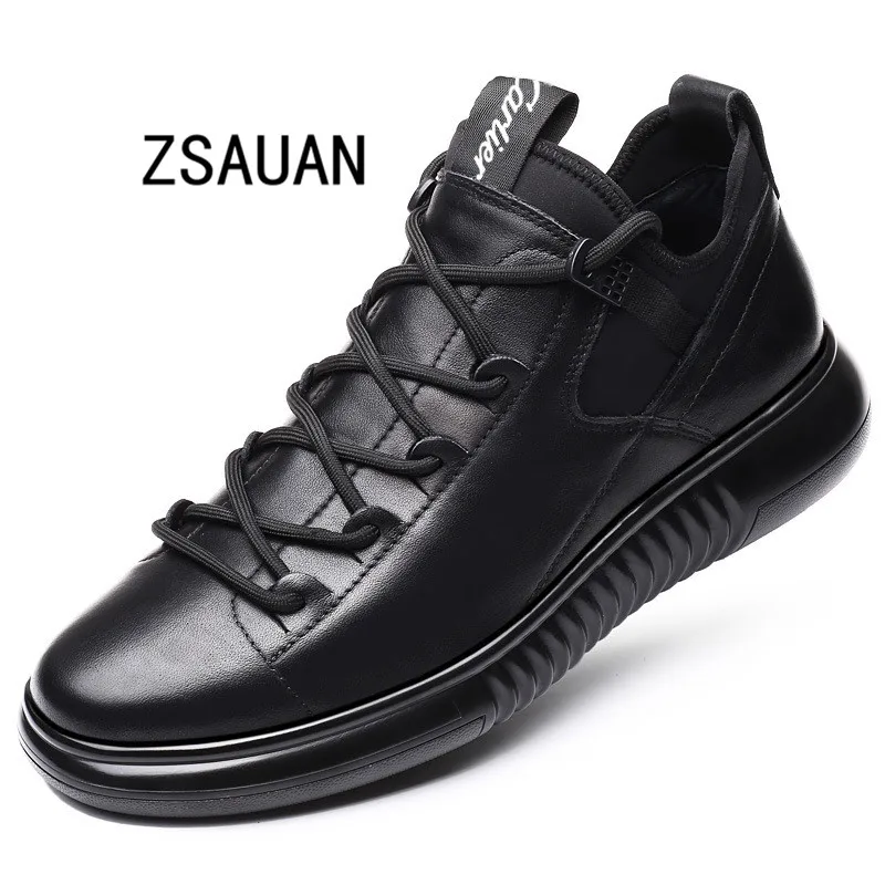 ORIGINAL ZSAUAN New Arrival Men Fashion 5CM Elevator Shoes Trending Winter Warm Plush Sneaker Black Leather
